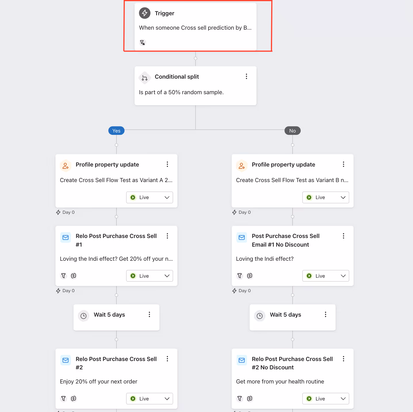 "Indi's original Cross Sell flow was a more generic solution - sent a standard 60 days after purchase and without specific product recommendations."